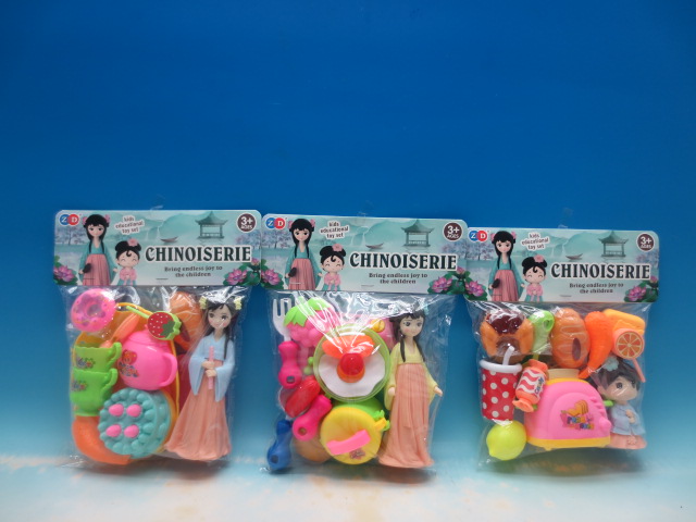 产品名称:(订卡头)餐具过家家+古装娃娃3款混装