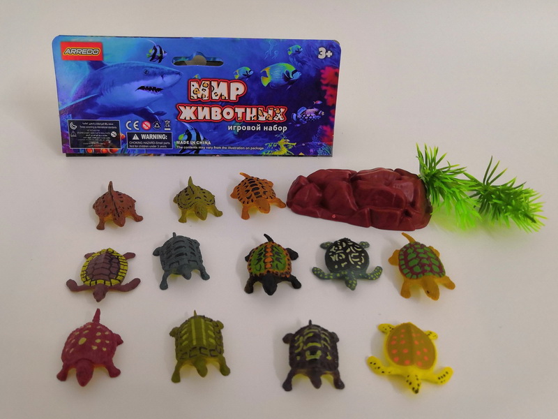产品名称:(订卡头俄文包装)PVC小乌龟12款12只庄石头草
