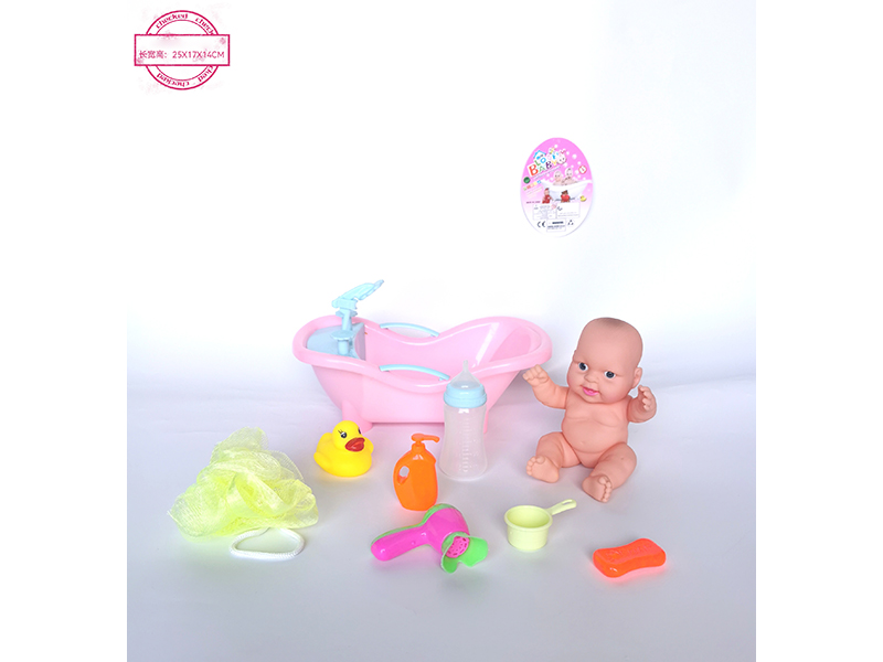 8寸搪胶娃娃配浴缸洗澡套装 (多款表情娃娃、配件多色混装) 48/96/13.5
