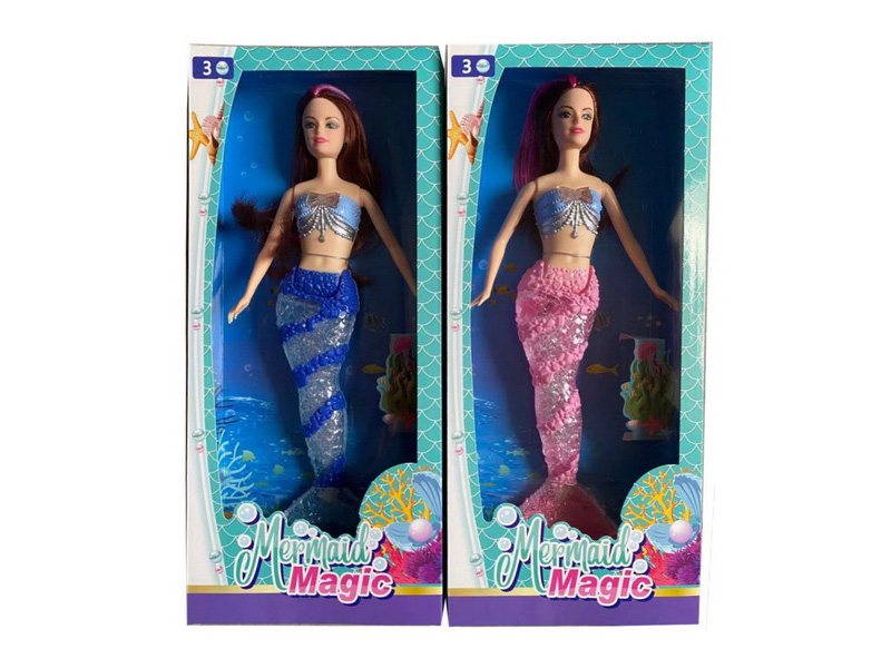 12寸实身灯光音乐长发美人鱼(蓝,粉2色混装) 48/96/11.7