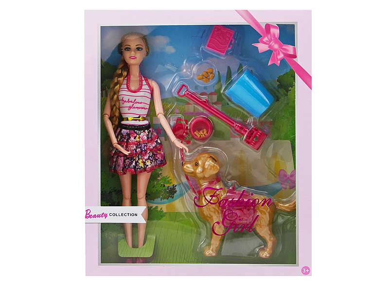11.5 "12 joint real body long hair princess with hand-made pet dog suit 32/64/11.2