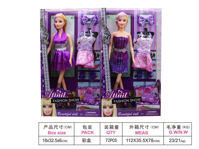 11.5" solid doll w/ finery set, 2 asst.