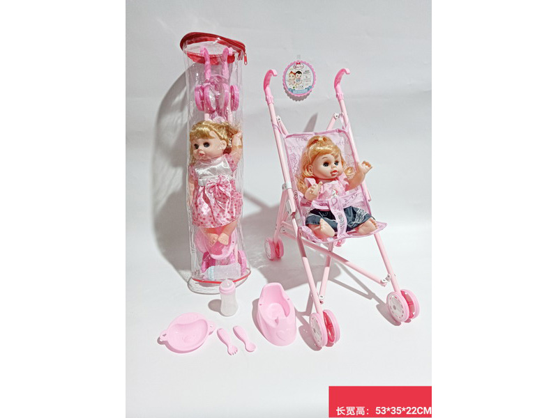 Iron cart with 14 inch live eye doll with IC drinking and urinating set