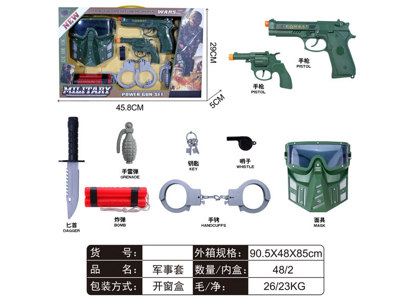 产品名称:(手提)军事套(面具+2款响声枪+红炸弹+警具)