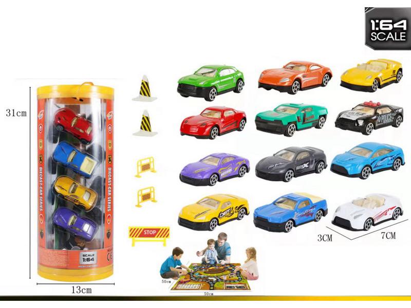 四驱动双惯性特技合金工程车(12只装) 四款混装