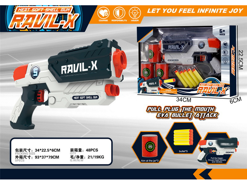 实色左轮乒乓枪配3保龄瓶1三连靶(蓝,黄2色混装)