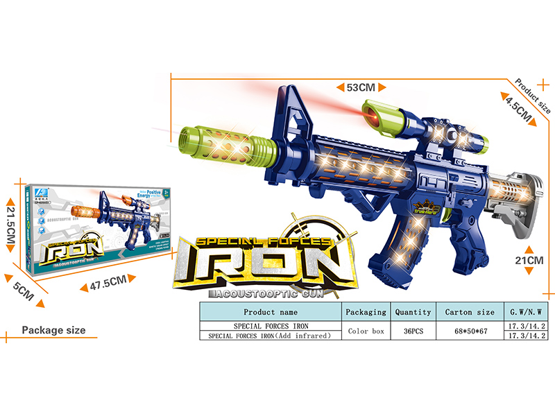 产品名称:带灯光声音电动枪(星能冲击者)