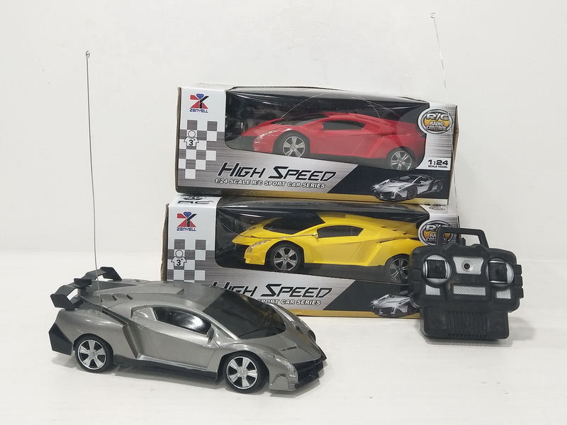 产品名称:1:24兰博基尼四通遥控仿真车(不包电,车身用3粒AA+遥控器用2粒AA,红黄灰混装)