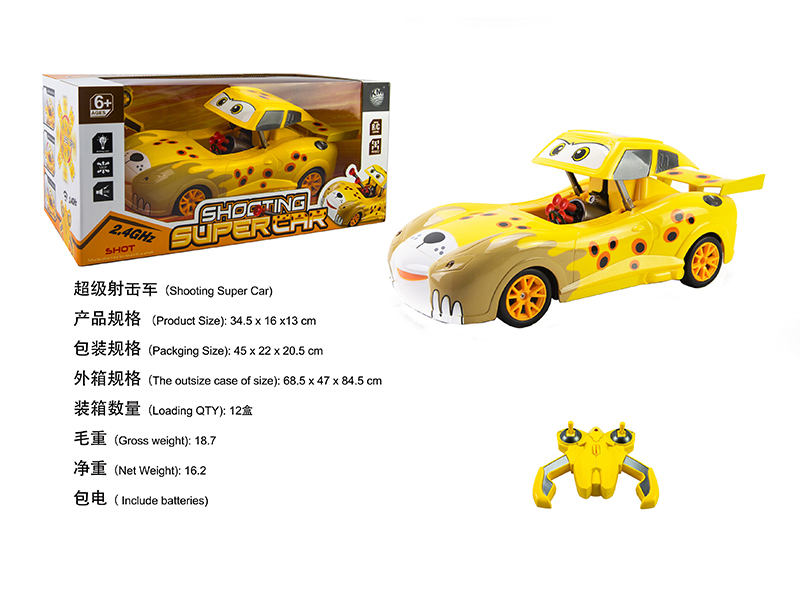 产品名称:遥控超级射击车配有一组7.2V电池组和USB充电线,遥控器用2粒AA电池(不包) 黄