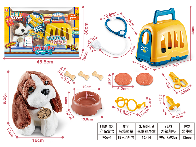 产品名称:医具毛绒宠物狗套装+狗笼12PCS