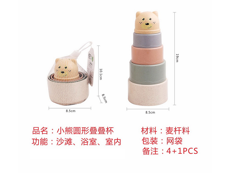 产品名称:5pcs小熊圆形叠叠杯(麦秆料)