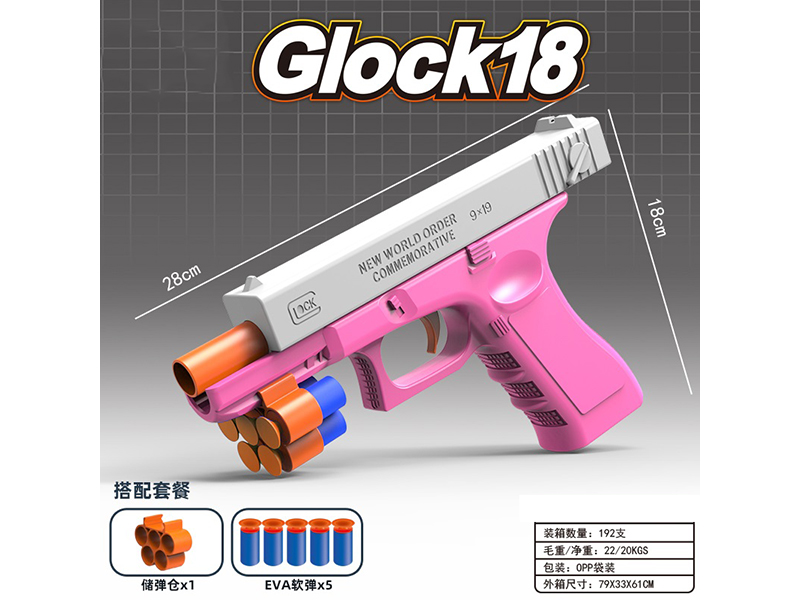 产品名称:手动格洛克软弹枪(EVA软弹*5、储弹仓*1)