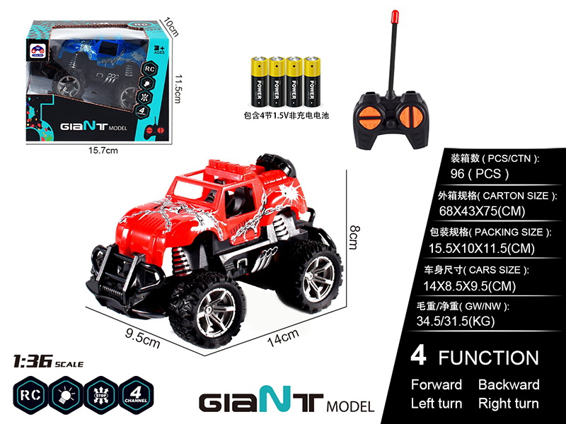 1:14 掠夺者 6x6(惯性动力带灯光音乐) 包电 (1.5V AG13 3粒) (黄色)
