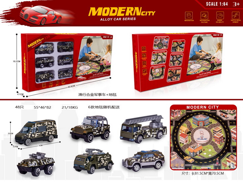 产品名称:(PVC内垫)6款6只庄滑行合金军事车配地毯(6款地毯随机配)