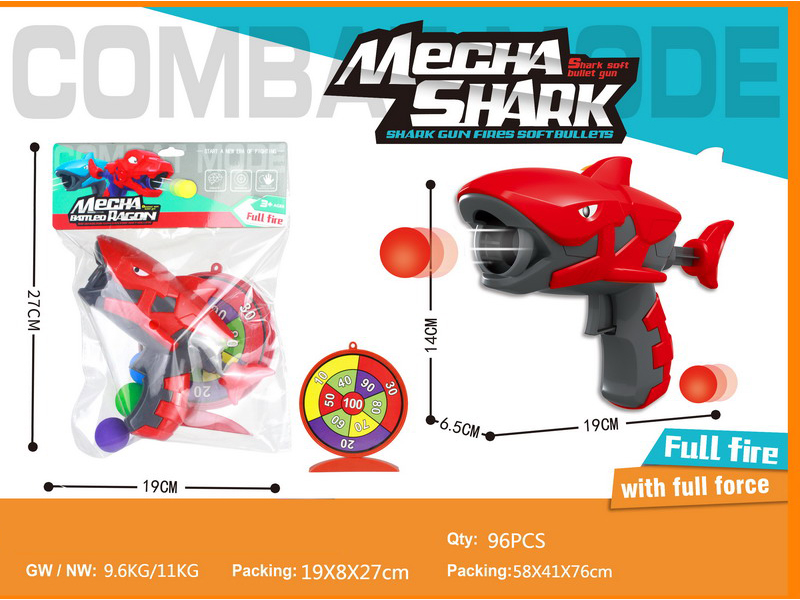 产品名称:(订卡头)鲨鱼软弹枪+标靶 (配3个EVA软弹球)