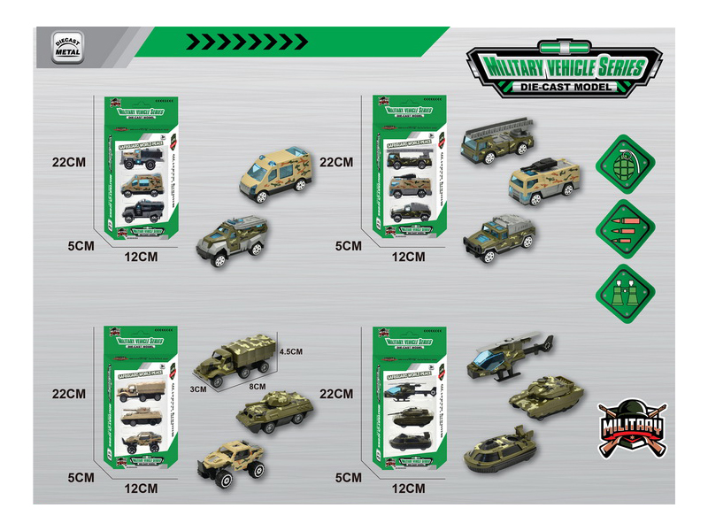 产品名称:1:64合金军车4款3只庄