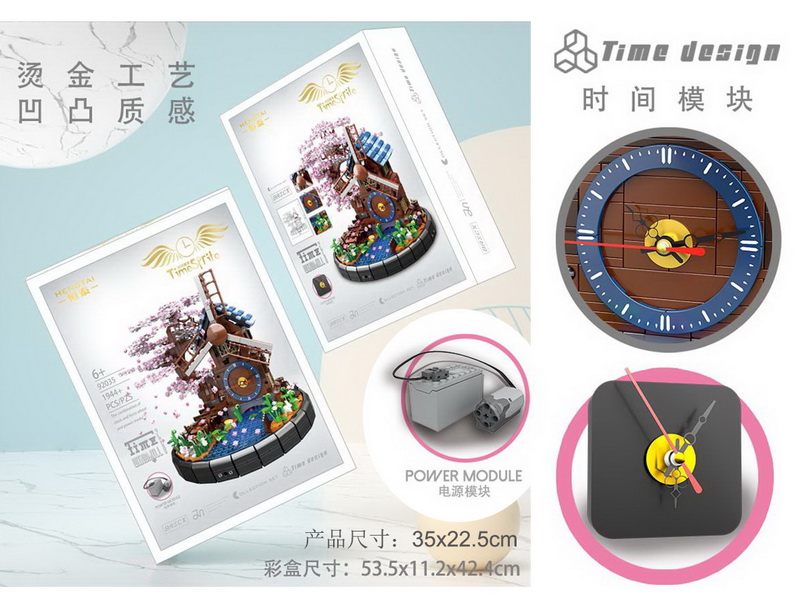 1944PCS blocks rotating sakura windmill w/ clock 0/8/8.5